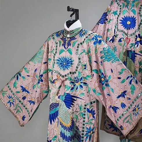 粤剧戏服正是一部“字典”,它以明制服装为基础,观众看到戏服,就能区分谁是文官,谁是武将。例如:小生通常饰演文质彬彬的角色,有时候甩袖,所以长袖称呼为文袖。小武需要打斗,短袖才方便演员动作,所以短袖亦称呼为武袖。因此文武生的戏服会出现文武袖。